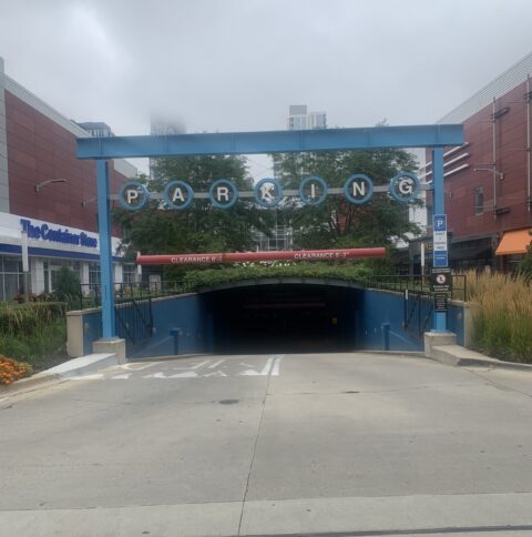 Enter this location at 1115 S Delano Ct. This is the Roosevelt Collection Garage, operated by One Parking. It is located on the North side of W Roosevelt Rd. at the intersection of W Roosevelt Rd. and S Delano Ct. via the plaza. The entrance is located on S Delano Ct., the street that runs within Roosevelt Collection property, and is marked with a ‘Parking’ sign. Please note: parking is only valid for the garage and NOT the plaza. There is a secondary entrance to the garage located on S Wells St, south of 9th Street. The overhead door is marked with a blue and white ‘Parking’ sign and will open automatically when you begin to pull in.